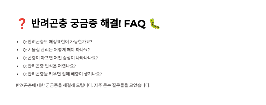 이제 반려곤충과 관련해 자주 묻는 질문을 정리해 볼까요? ❓