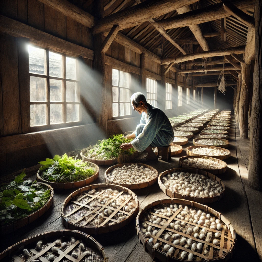 전통적인 방식으로 누에를 키우고, 그들이 뽕잎을 섭취하며 자라는 과정은 상당히 섬세하게 이루어져야 하며, 이는 결과적으로 비단의 품질에 직접적인 영향을 미칩니다.